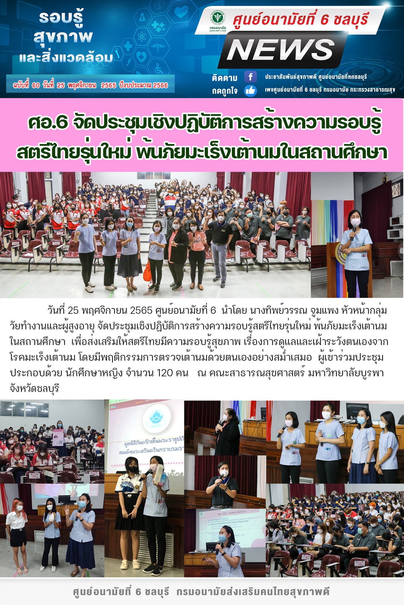 อ.6 จัดประชุมเชิงปฏิบัติการสร้างความรอบรู้สตรีไทยรุ่นใหม่ พ้นภัยมะเร็งเต้านมในสถานศึกษา