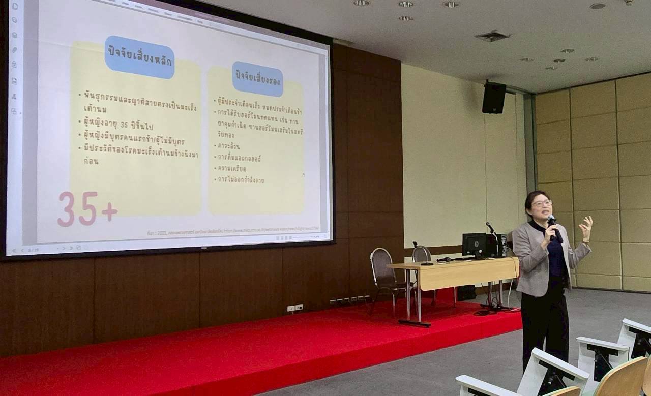 วันที่ 28 มกราคม 2569 นายแพทย์อัครวัฒน์ เพียวพงภควัต ผู้อำนวยการศูนย์อนามัยที่ 6 ชลบุรี มอบหมายให้กลุ่มพัฒนาการส่งเสริมสุขภาพวัยทำงาน โดย นางทิพย์วรรณ จูมแพง และคณะ จัดประชุมเชิงปฏิบัติการประชุมเชิงปฏิบัติการสร้างความรอบรู้สตรีไทยรุ่นใหม่พ้นภัยมะเร็งเต้านมในสถานศึกษา โดยมี นายสมเกียรติ สมบูรณ์เงิน ผู้ช่วยอธิการบดี ประธานเปิดการประชุม โดยมีวัตถุประสงค์ เพื่อให้สตรีไทยมีความรอบรู้สุขภาพเรื่องการดูแลและเฝ้าระวังตนเอง จากโรคมะเร็งเต้านมโดยมีพฤติกรรมการตรวจเต้านมด้วยตนเองอย่างถูกต้องสม่ำเสมอ กลุ่มเป้าหมายประกอบด้วย ครู อาจารย์ นักศึกษาบุคลากรมหาวิทยาลัยศรีปทุม ณ มหาวิทยาลัยศรีปทุม มีผู้เข้าร่วมประชุมรวมทั้งสิ้น จำนวน 130 คน