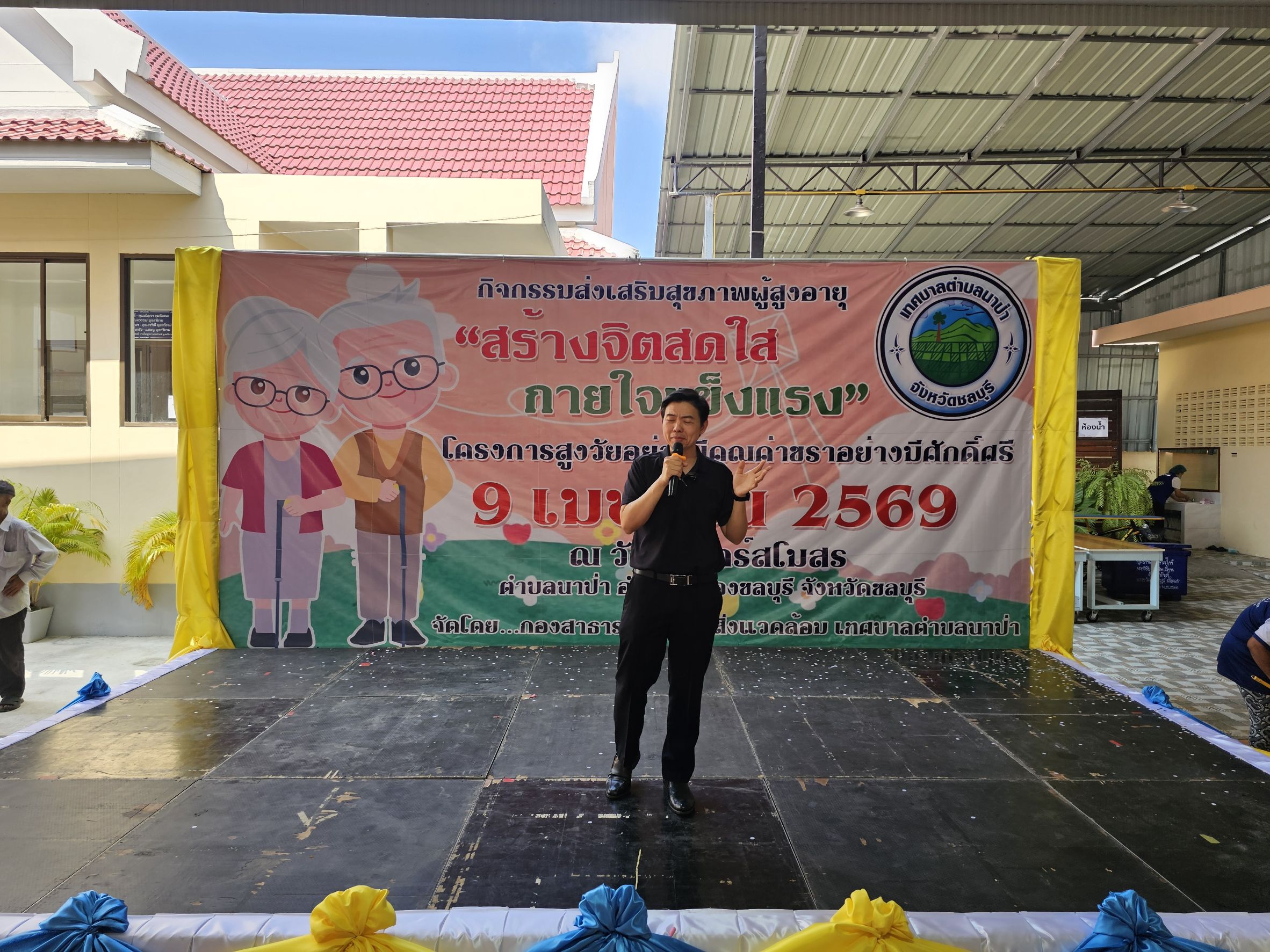 วันที่ 9 เมษายน 2569 นายแพทย์อัครวัฒน์ เพียวพงภควัค ผู้อำนวยการศูนย์อนามัยที่ 6 ชลบุรี เข้าร่วมกิจกรรมส่งเสริมสุขภาพผู้สูงอายุ เทศบาลตำบลนาป่า จังหวัดชลบุรี พร้อมให้ความรู้ ภายใต้แนวคิด “สร้างจิตสดใส กายใจแข็งแรง” ตามโครงการ “สูงวัยอย่างมีคุณค่า ชราภาพมีศักดิ์ศรี” เพื่อเสริมสร้างความรอบรู้ด้านสุขภาพและส่งเสริมคุณภาพชีวิตผู้สูงอายุในชุมชนให้สามารถดำรงชีวิตได้อย่างมีความสุขและมีศักดิ์ศรีทั้งยังได้สร้างความตระหนักให้เกิดการดูแลตนเองอย่างเหมาะสม และสร้างการยอมรับในบทบาทของผู้สูงอายุในครอบครัวและชุมชนมากยิ่งขึ้น